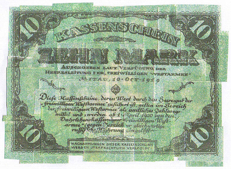 Auf dem Ausschnitt findet sich die Stadt Mitau (mehr dazu: ).Unbedingt aufbewahren. Sowas würde ich sorgsam aufbewahren, da es viel über die damalige Notzeit erzählt.