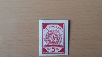 Diese erste Marke von Lettland aus dem Jahre 1918 gibt es in geschnitten (Michel-Nr. 1) und gezähnt (Mi.-Nr. 2). Jede dieser Marken kommt mit 3 verschiedenen Rückseiten vor. Der Michel schreibt darüber: