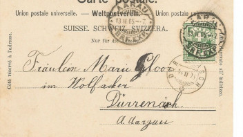 Ein interessantes Sammelgebiet für die Schweiz-Sammler sind die so genannten Rasierklingen-Stempel, die optisch schön ins Auge fallen. Gerade ist mir der erste seiner Art in die Hände gefallen, ein Ankunftsstempel von Lausanne mit Inschrift „EXP.LETTR.“ Die Ansichtskarte ging am selben Tag mit einem anderen Stempel Lausanne wieder heraus, da der Empfänger inzwischen eine andere Adresse hatte.