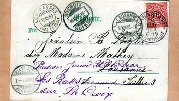 Ein interessantes Sammelgebiet für die Schweiz-Sammler sind die so genannten Rasierklingen-Stempel, die optisch schön ins Auge fallen. Gerade ist mir der erste seiner Art in die Hände gefallen, ein Ankunftsstempel von Lausanne mit Inschrift „EXP.LETTR.“ Die Ansichtskarte ging am selben Tag mit einem anderen Stempel Lausanne wieder heraus, da der Empfänger inzwischen eine andere Adresse hatte.
