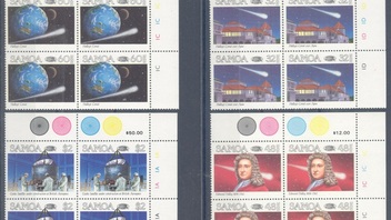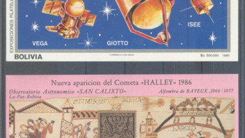 Da ist ein Block aus Argentinien mit einem Goldüberdruck u.a. vom Halleyschen Kometen. Ich habe hierzu keine Information hinsichtlich Michelnummer zum Urblock und zum Block mit Überdruck den ich auch schon mit Silberüberdruck gesehen habe. Es kann natürlich auch sein das der Überdruck nicht autorisiert war bzw. der ganze Block eine Cinderella ist. Ich habe keine Ahnung!