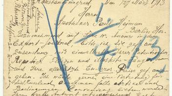 Das Streifband wurde 1897 im Post- und Telegraphen-Kontor von Pulkovo an den Hamburger Astronomen Richard Schorr mit der einfachen Anschrift „Hamburg /Sternwarte“ aufgegeben.