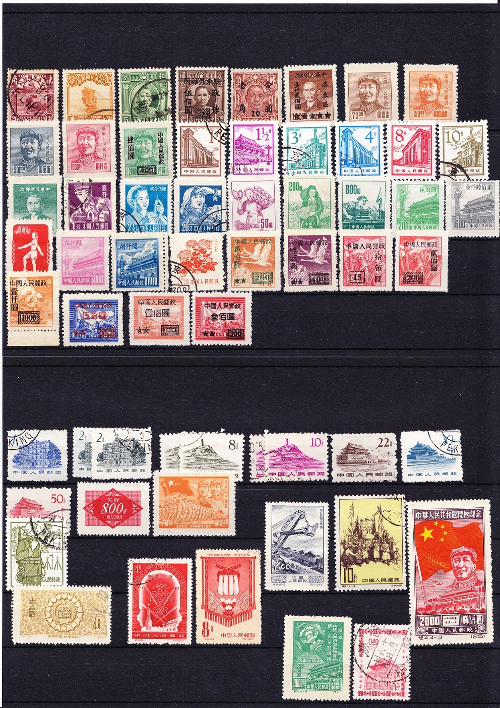 ich habe auf dem Flohmarkt eine Briefmarkensammlung alle Welt günstig erstehen können. Dabei waren auch diese Chinabriefmarken dabei. Die Sammlung befand sich in zwei Leitzordnern auf selbstgestalteten Blättern, befestigt mit Falz. Ich habe fast alle Marken entfalzen können.