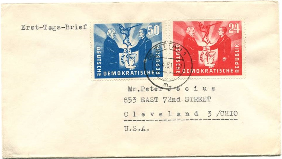 folgenden, zugegebenermaßen echt sehr seltenen, FDC habe ich entdeckt und frage mich, ob der Stempel koscher ist? Es existieren weitere Briefe (auch im Niedrigpreissegment) mit dieser Anschrift und diversen Zittauer Tagesstempeln. Allerdings taucht der Stempel mit dem Unterscheidungsbuchstaben "m" nur auf diesem Beleg auf. Nun war der 22.4.51 ein Sonntag. Wurde dieser Stempel an diesem Sonntag in Zittau zeitgerecht abgeschlagen? Hatte am 22.4.51 überhaupt ein Postamt in Zittau geöffnet? Über Hinweise, besonders zum Stempel, würde ich mich sehr freuen :)!
