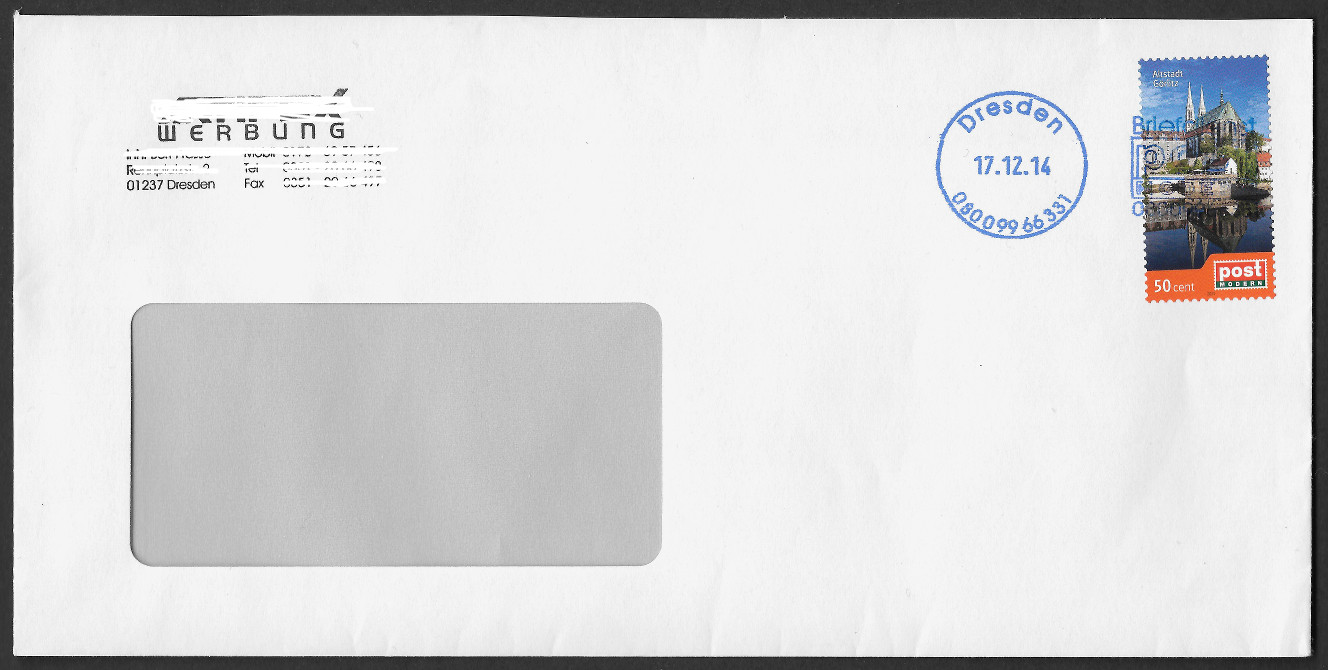 50cent "Altstadt Görlitz" (SK) - Rundstempel Dresden (Variante) 30 01 14 mit großem Werbeblock