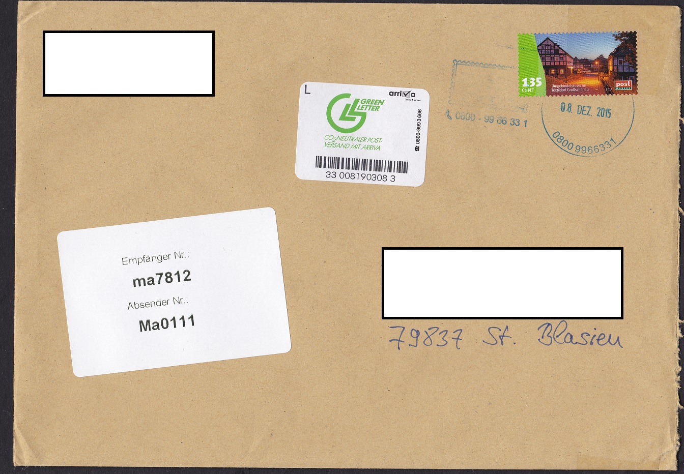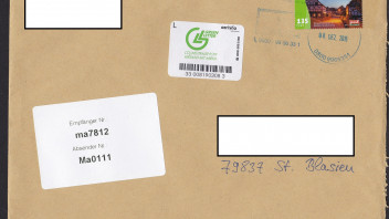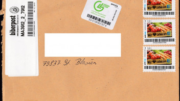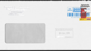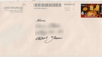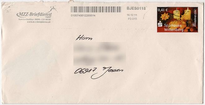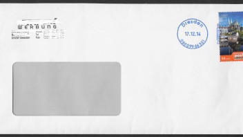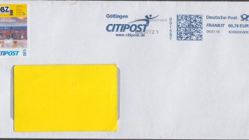 Diesen denkwürdigen Brief erhielt ich heute, inliegend eine Abonnementsrechnung der DBZ. Mein erster Brief mit einer Privatpostmarke überhaupt, obwohl es diese schon jahrelang gibt. Links oben klebt eine 60-Cent-Marke der Citipost mit dem Abbild einer DBZ-Ausgabe, rechts oben anscheinend eine Frankit-Freistempel-Abstempelung, diese aber über 70 Cents ?(