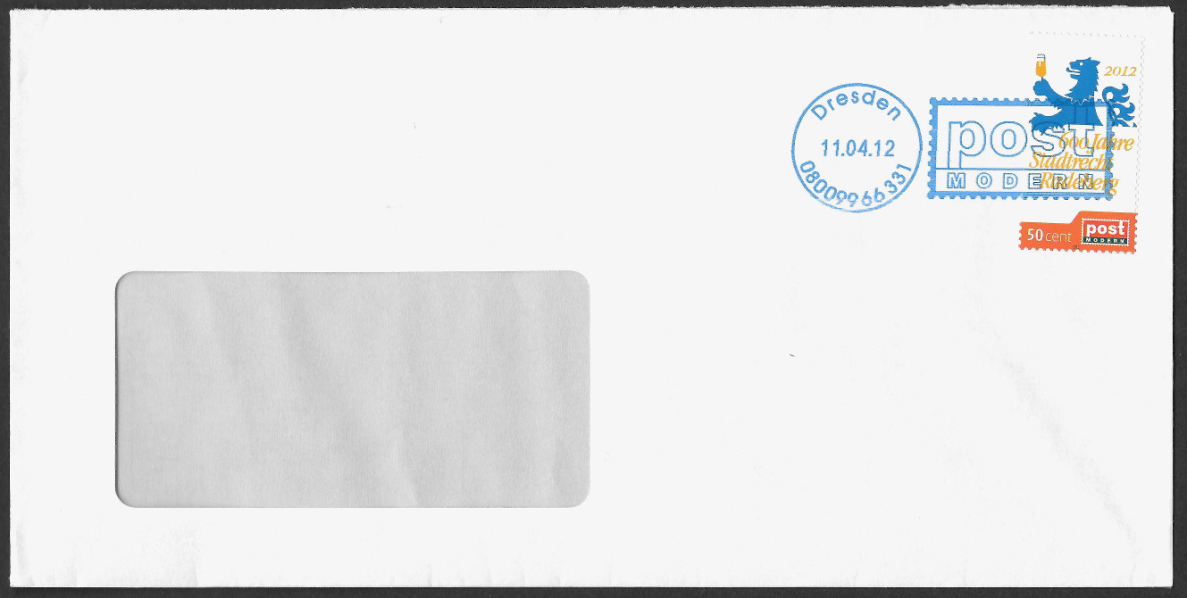• PostModern 50cent 600 Jahre Stadtrechte Radeberg Rundstempel Dresden 2012-04-11.jpg