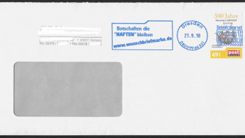 >>Müßte die Marke nicht rechts oben kleben und entwertet werden?<<