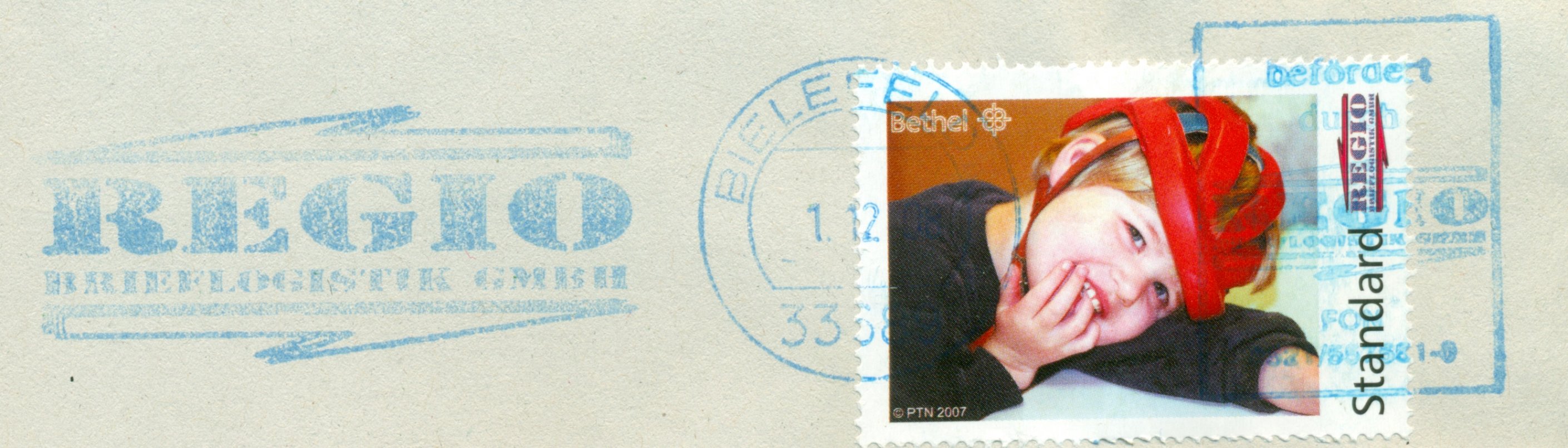Post aus Bethel: Fünfmal das gleiche Kind, aber in 3 Varianten und mit verschiedenen Stempeln. Viermal als Brief, das letzte leider nur als Briefstück. Regio Gmbh aus 2006 und 2007