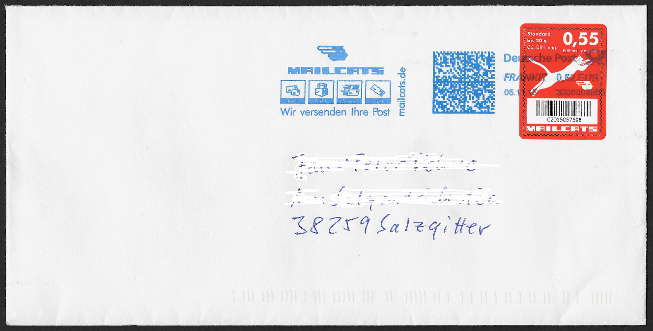 Diesen denkwürdigen Brief erhielt ich heute, inliegend eine Abonnementsrechnung der DBZ. Mein erster Brief mit einer Privatpostmarke überhaupt, obwohl es diese schon jahrelang gibt. Links oben klebt eine 60-Cent-Marke der Citipost mit dem Abbild einer DBZ-Ausgabe, rechts oben anscheinend eine Frankit-Freistempel-Abstempelung, diese aber über 70 Cents ?(
