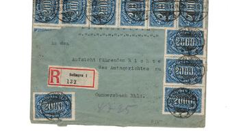 Aus Ermangelung neuer Marken mussten zum Teil Unmengen von Briefmarken für einen Brief verklebt werden.