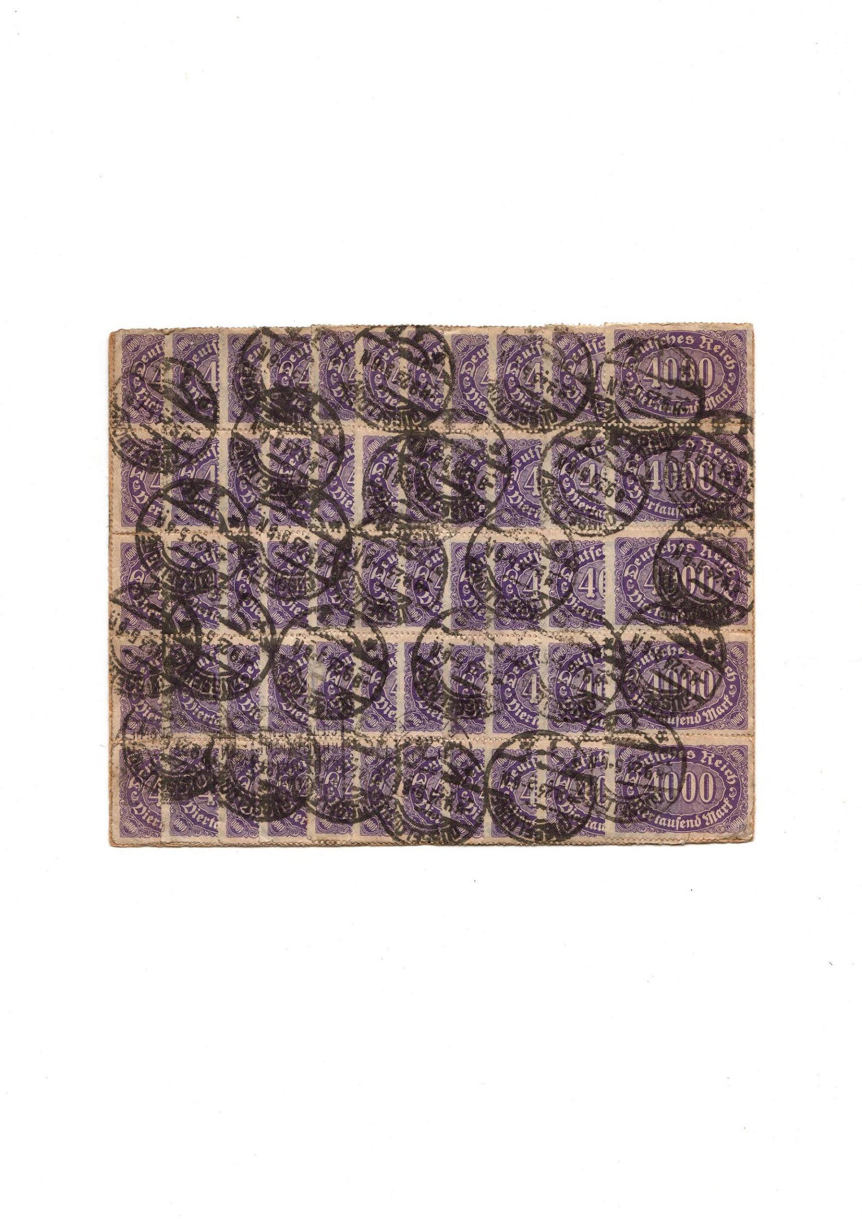 Also währen der großen Inflation in Deutschland 1914 bis November 1923 war die Geldentwertung so rasant dass man mit dem Druck der neuen Briefmarken in der Schlussfase nicht mehr nachkam. Vor allem zum Ende so ab Dezember 1922 würde das Geld fast täglich weniger wert.
