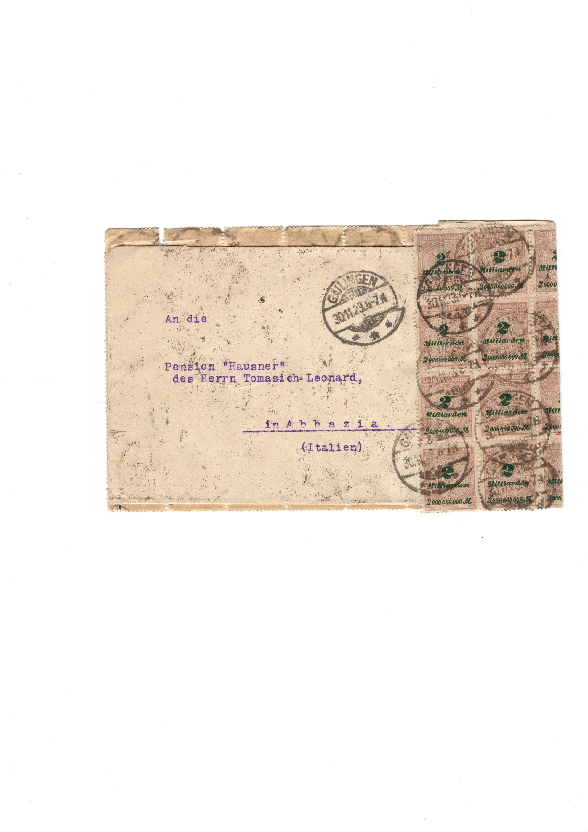 Der Brief ist mit 20 Marken Michel DR 253 a 2000,- M frankiert.