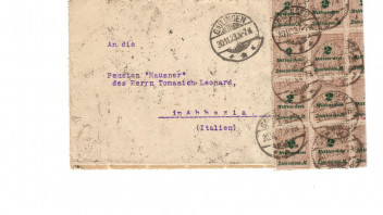 Aus Ermangelung neuer Marken mussten zum Teil Unmengen von Briefmarken für einen Brief verklebt werden.