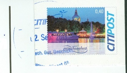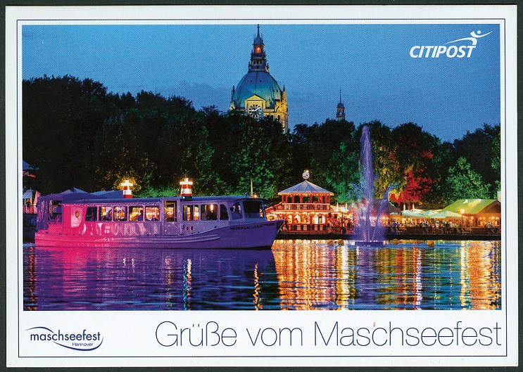 GAA (0023bddd) aus Ganzsache (0029abn) auf Citipost-Hannover-Karte (0022a, 0023b). Die Ganzsache wurde gratis auf dem diesjährigen Maschseefest (0026a) verteilt. Auflage unbekannt.