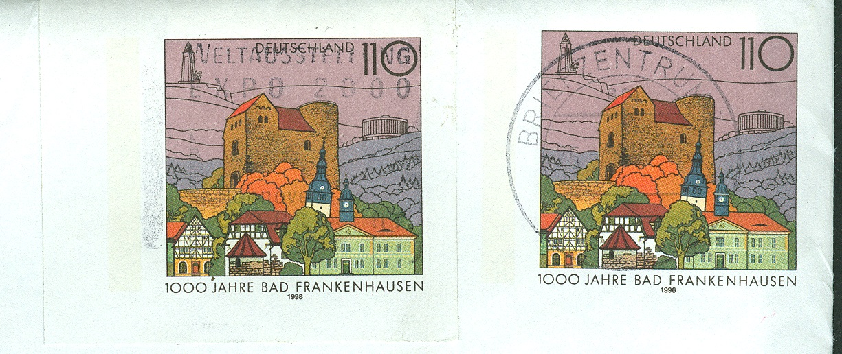 wenn das, was zu versenden war, nur in ein Riesenkuvert passte, brauchte man die Wertzeichen nicht extra auszuschneiden, sondern klebte einfach komplette Ganzsachen auf das Kuvert. So ein Riesenkuvert macht nur beim Scannen Probs.