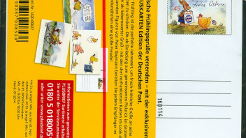 Zur Beachtung sei erwähnt, dass der Wertstempel auf der österlichen CitiPost-Hannover-Ganzsache links oben eingedruckt worden war, der GAA jedoch rechts oben Verwendung fand. Die Beförderung fand ohne Beanstandung statt. Warum auch nicht?