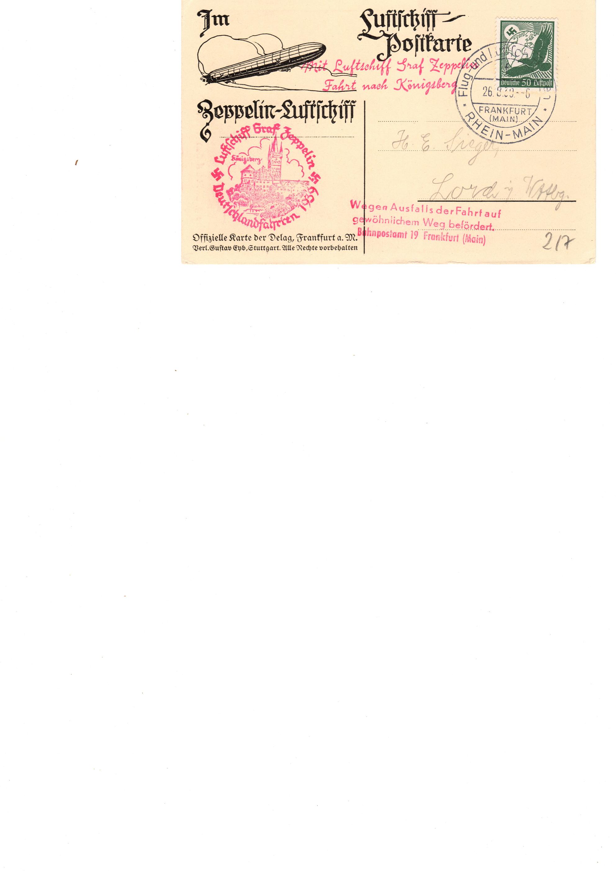 Hallo habe hier einen Zeppelinbeleg