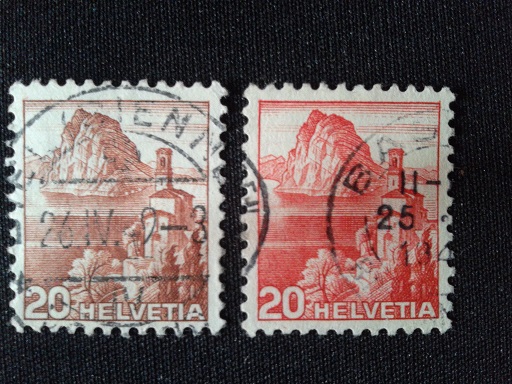 Du zeigst hier die Mi.Nr. 502 (rotbraun) und 372 (karminrot) - Kirche von Castagnola. Gotthardbahn auf Mi 301 (ebenfalls 20 Rappen)