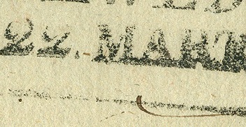 ... Die nächste Generation hatte die Monatsangabe in Ziffern. Siehe oben "25 / 1(Januar)". Hinter der Monatsziffer findet man bei den ersten Abschlägen auch einen Punkt. ... Dein GUBEN-Stempel gehört schon zur "nächsten Generation", also ab etwa 1825. Wobei Du mit der Jahreszahl "1827" eine mögliche Datierung haben könntest.