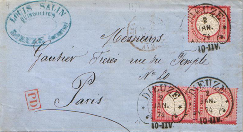 ein Beleg mit dem wohl seltenen Brustschildstempel DIEUZE.