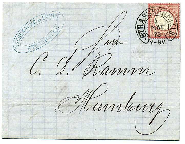 nachdem ich mich Vorgestern im Chat kurz mit woermi über Hufeisenstempel ausgetauscht habe, möchte ich gerne hier in diesem Thread meinen bisher einzigen HES-Abschlag von Schlettstadt zeigen. Die Kleinstadt gehört heute zu Frankreich und befindet sich im Elsass, das wiederum von 1871 bis 1918 Teil des Deutschen Reiches war. Deshalb also der 133 Jahre alte Stempelabschlag auf einer deutschen Briefmarke. Interessant finde ich die verschiedenen Schreibweisen des Ortes, welcher auch Ausdruck der bewegten Geschichte zwischen Frankreich und Deutschland ist. Heute trägt die 17.000 Einwohner zählende Stadt den Namen Sélestat, wurde jedoch bis 1920 auf Französisch als Schlestadt bezeichnet. Die elsässische Schreibvariante lautet wiederum Schlettstàdt.