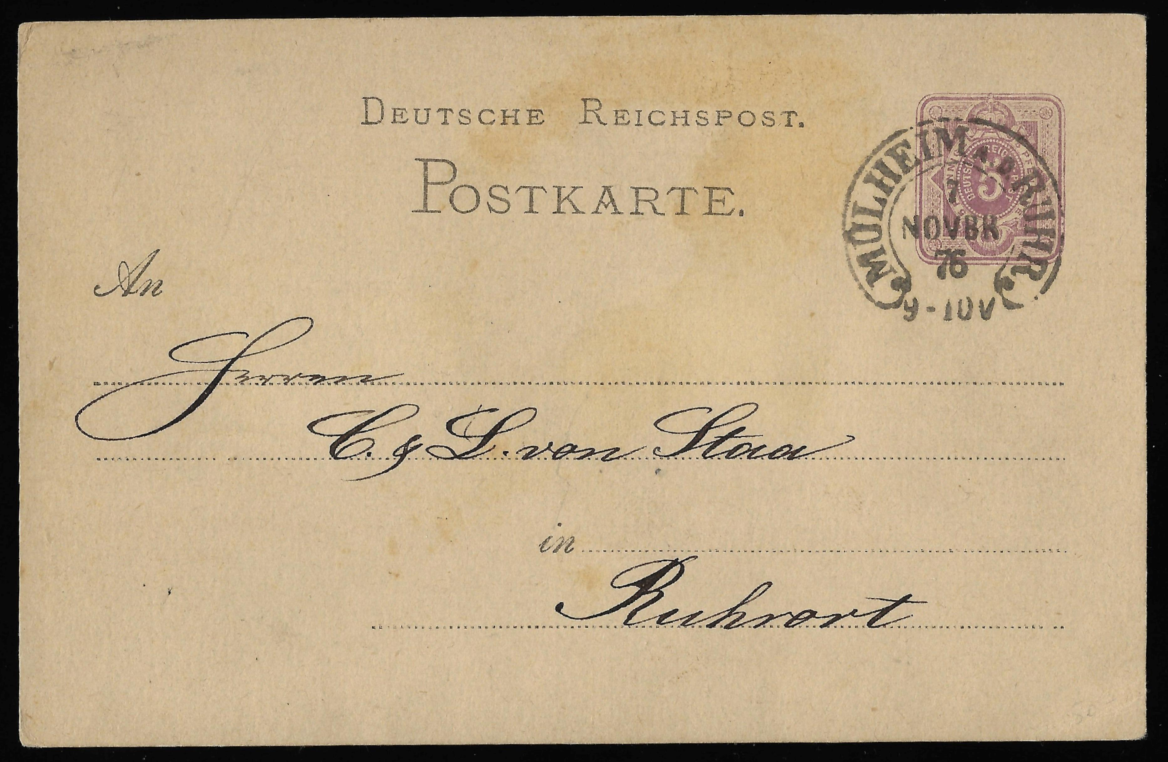 und Ganzsachen Postkarte P5 vom 7.11.76 nach Ruhrort.