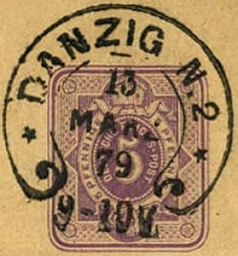kommen wir zum Hufeisenstempel 7-2 Danzig, er ist recht selten, verwendet wurde er vom 1.4.1873 (neues FD) - 18.2.1880 (neues SD).