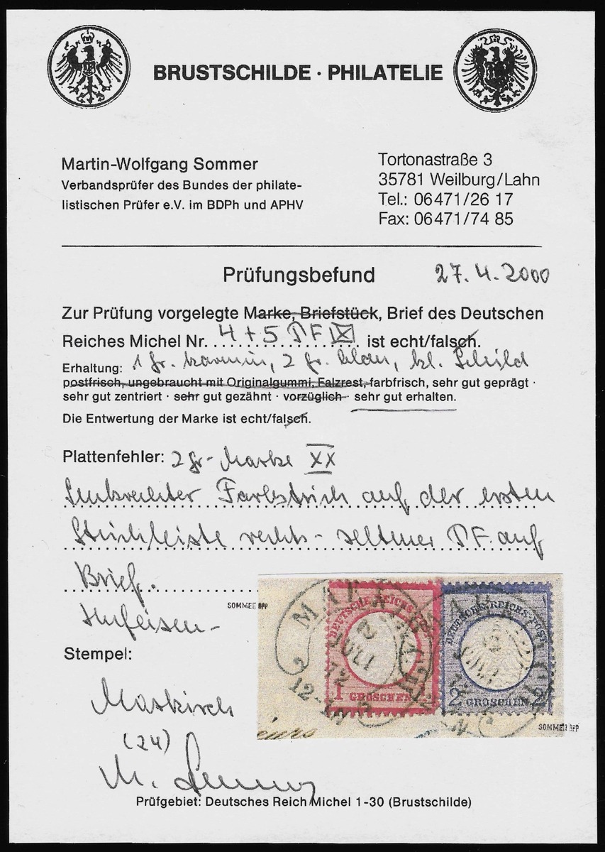 Die Kombination aus gutem Hufeisenstempel und seltenem Plattenfehler auf Auslandsbrief macht das Stück wohl einmalig.