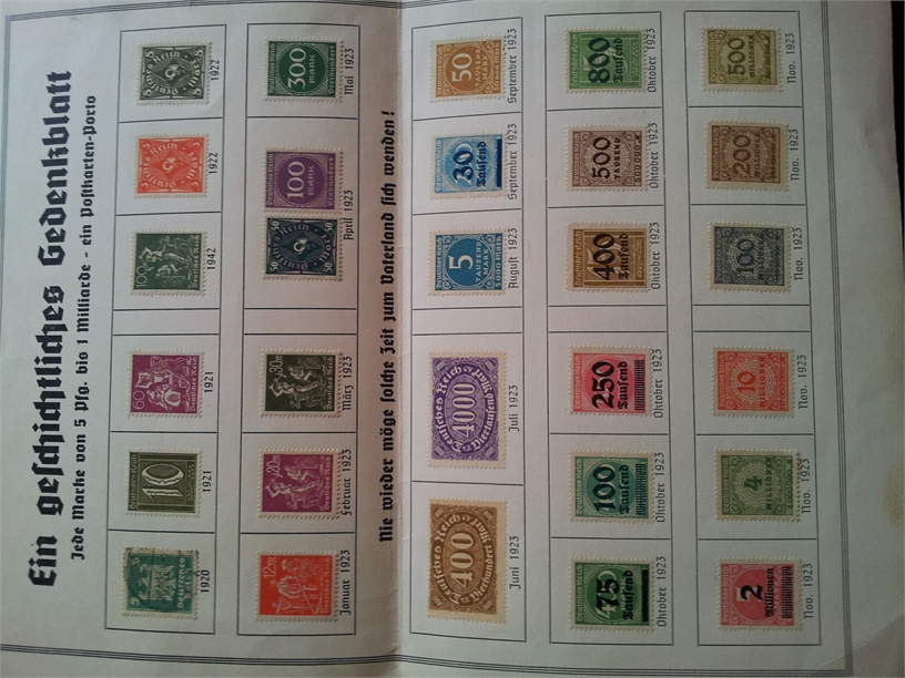 Die Marken selbst haben wohl keinen großen Wert und sind mehr Massenware. Inflations-Sammler sind vielleicht bereit, für das Gedenkblatt einen Zuschlag zu bezahlen. Bei Ebay wurden solche Gedenkblätter mal angeboten, bei den beendeten Sofortkäufen sieht man leider nicht, ob sie zu den geforderten Preisen auch wirklich verkauft worden sind oder nicht: