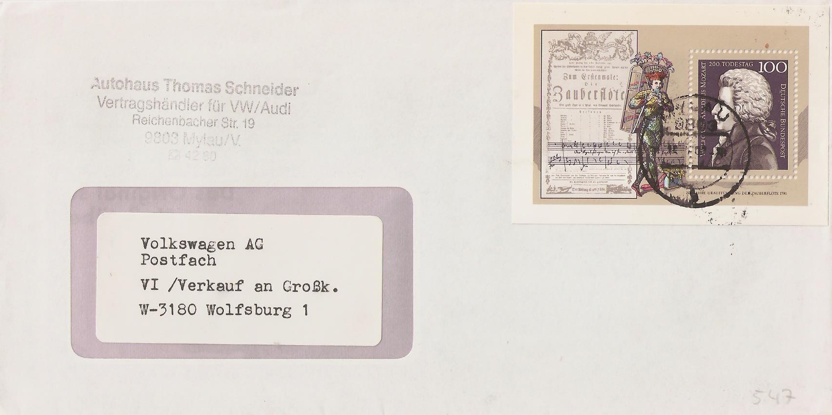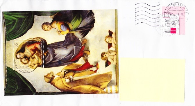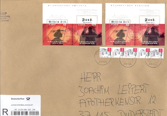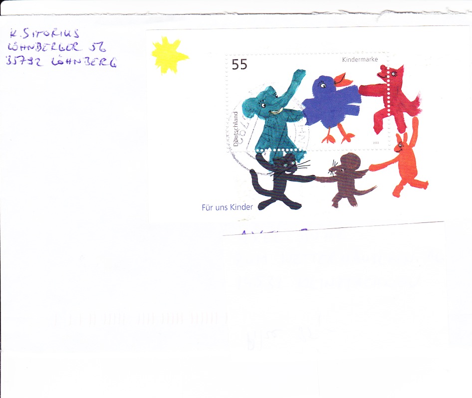Man findet sie so selten; Blockfrankaturen, diesen Standartbrief bekam ich dieser Tage zugesandt mit Block 75 frankiert, leider nicht portogerecht (überfrankiert mit 27 Cent) was schade ist. Wäre es ein Kompaktbrief gewesen wäre er (unterfrankiert mit 5 Cent) gewesen. Da heute keine Gewichtsangaben auf Briefen festgehalten werden ist bei diesem Brief nicht nachweissbar um welche Versandform es sich handelte.