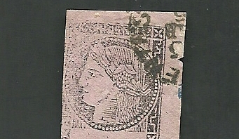 hier habe ich zu glauben eine französische Marke evtl. Ceres. die Marke ist geschnitten und ohne Wertangabe. dünnes Papier und gestempelt.