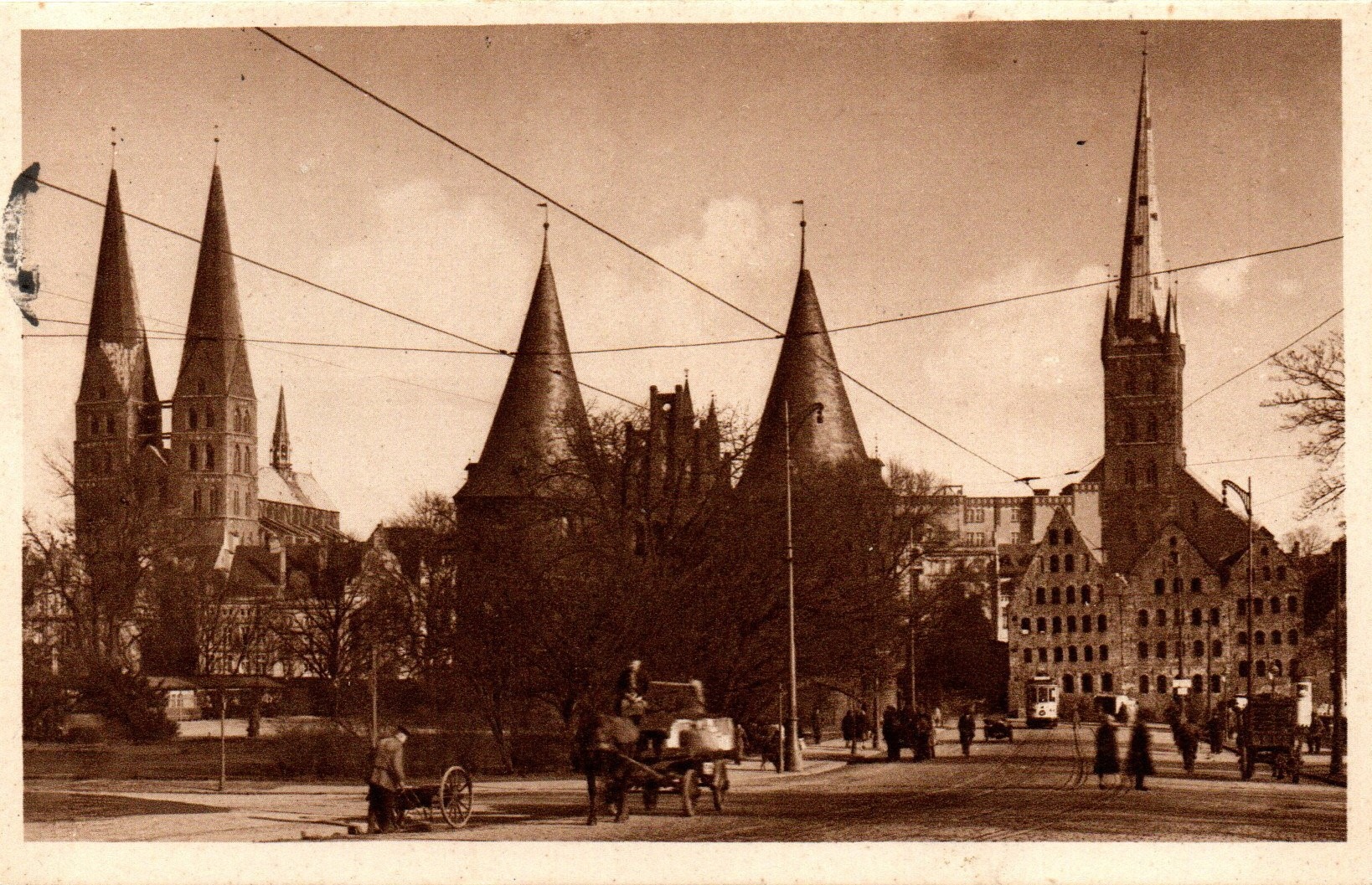 Ein Modell der Kathedrale in der Hand ihrer Patronin, der Hl. Hedwig, auf Mi 133 (Berlin) aus dem Jahre 1955: 25 Jahre Bistum Berlin; Wiederaufbau zerstörter Kirchen.
