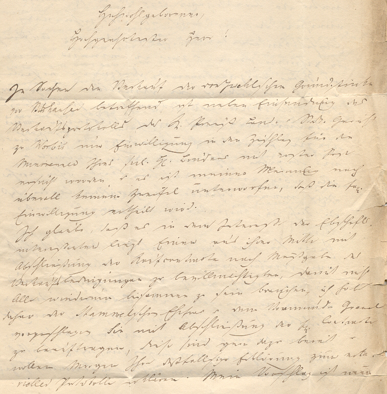 Hochgeehrtester Herr!In Sachen den Verkauf (?) der vorzwecklschen (?) Grundstücke