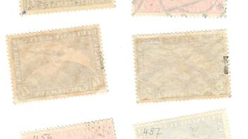 455 Bug, 456 und 457 Stempel mindestens nicht prüfbar, 498 wahrscheinlich Falschstempel, 507 verdächtiger Stempel.