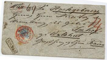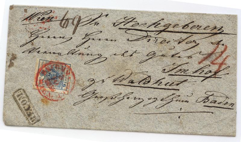 Ich habe da einen Brief, der wurde am 5. Oktober 1858 als Einschreiben von Wien nach Waldhut, "Großherzogthum Baden" gesandt.