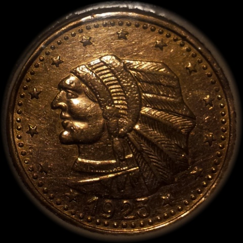 das Stück sieht entfernt einer 2,50-$-US-Goldmünze ähnlich, Indianerkopf und Adler sind aber hier viel grober dargestellt, der Landesname und das Liberty fehlen, die Umrandung ist anders, das Stück wird wohl nicht aus Gold sein, oder? Leider ist die Abbildung sehr schattig, heißt die Jahreszahl unten 1925? Steht unter dem Adler noch ein Nennwert?