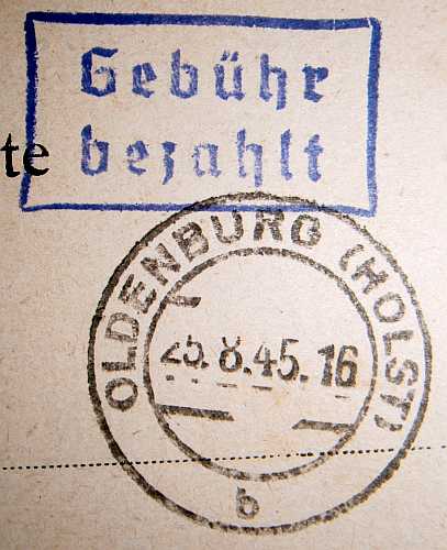 In den Monaten nach dem Zusammenbruch des 3. Reiches gab es kaum gültige Briefmarken (die alten durften logischerweise nicht mehr benutzt werden) - deshalb wurde das Porto bar am Schalter bezahlt und dieser Vorgang mit dem "Gebühr bezahlt"-Stempel bestätigt.