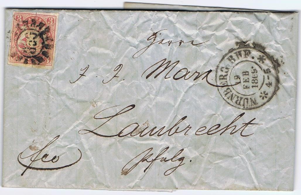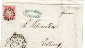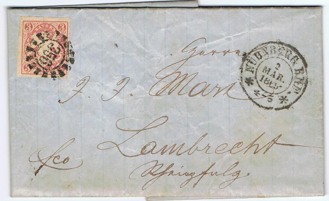 Brief mit MiNr. 15 vom 12. März 1869 von Nürnberg nach Erding.