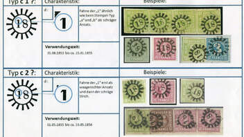 Den geschlossenen Mühlradstempel 18 von Ausgburg gibt es in 6 Typen. Hier eine kleine Erläuterung zu den Stempeltypen: