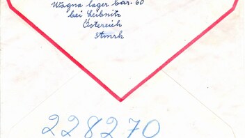 zwischen 1951 und 1960. Zuschlag für Einschreiben 340 Groschen. Macht zusammen 580 Groschen.