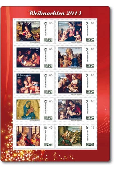 Optisch schön anzuschauen ist der "Weihnachtsbogen" 2013 der Firma Sieger mit individuellen Gemäldemarken zum Thema.