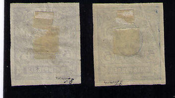 Habe noch 5 grössere ähnliche Marken mit rückseitigem Prüfstempel, die ich unter IIc und 10 Probedruck und Nr. 14 einordnen würde, bin mir aber nicht sicher.