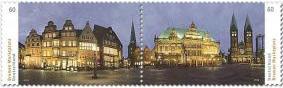 Dabei erneut ein Zusammendruck Stadtansicht Bremen 2 Werte zu 60 Cent als Zusammendruck als EF nicht zu verwenden. Desweiteren ein Wert zu 60 Cent Richard Strauss sowie ein Wert zu 240 Cent Meister Bertram.