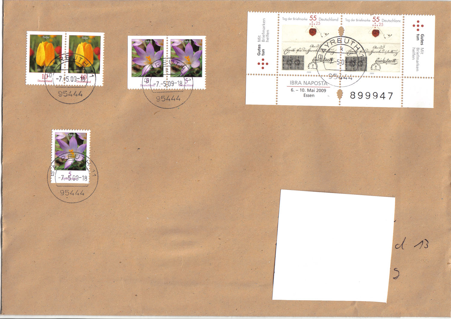 1. Beleg vom Ersttag, echt gelaufen mit Blumenmarken