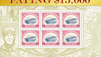 Eine Original-Einzelmarke der Inverted Jenny wurde auf derselben Auktion zu 210.000,- USD (Ausruf: 450.000,- USD) zugeschlagen.