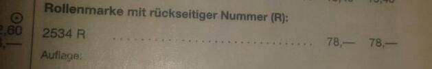 Die 2534r Feuerlilie 390c als Rollenmarke soll lt diesem 78€ wert sein. Das is wohl ein Druckfehler.