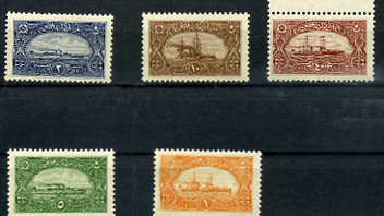 Osmanische Spendenmarke zugunsten der Marine. Nicht teuer. Mit Aufdrucken von 1921/1922 besser bewertet.