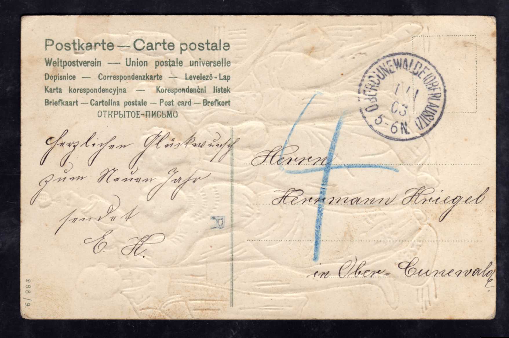 ist nicht meine Zeit aber Ortspostkarte gelaufen in Obercunewalde (OPD Dresden) ab dem 1.4.1900 kostete 2 Pf. hier unfrankiert also doppeltes Porto von 4 Pf.