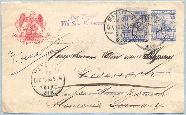 Brief-GA E 55 mit Zusatzfrankatur vom 10.12.1896